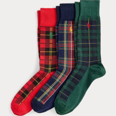 POLO RALPH LAUREN PLAID TROUSER SOCKS 3 PACK GIFT SET WINE/GREEN/ROYAL