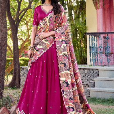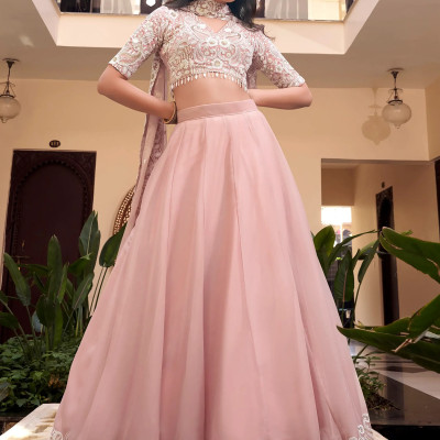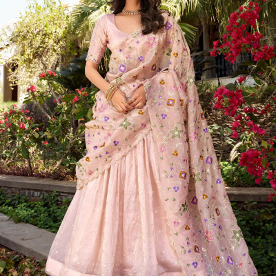 Gorgeous Pink Thread Embroidered Silk Traditional Lehenga Choli